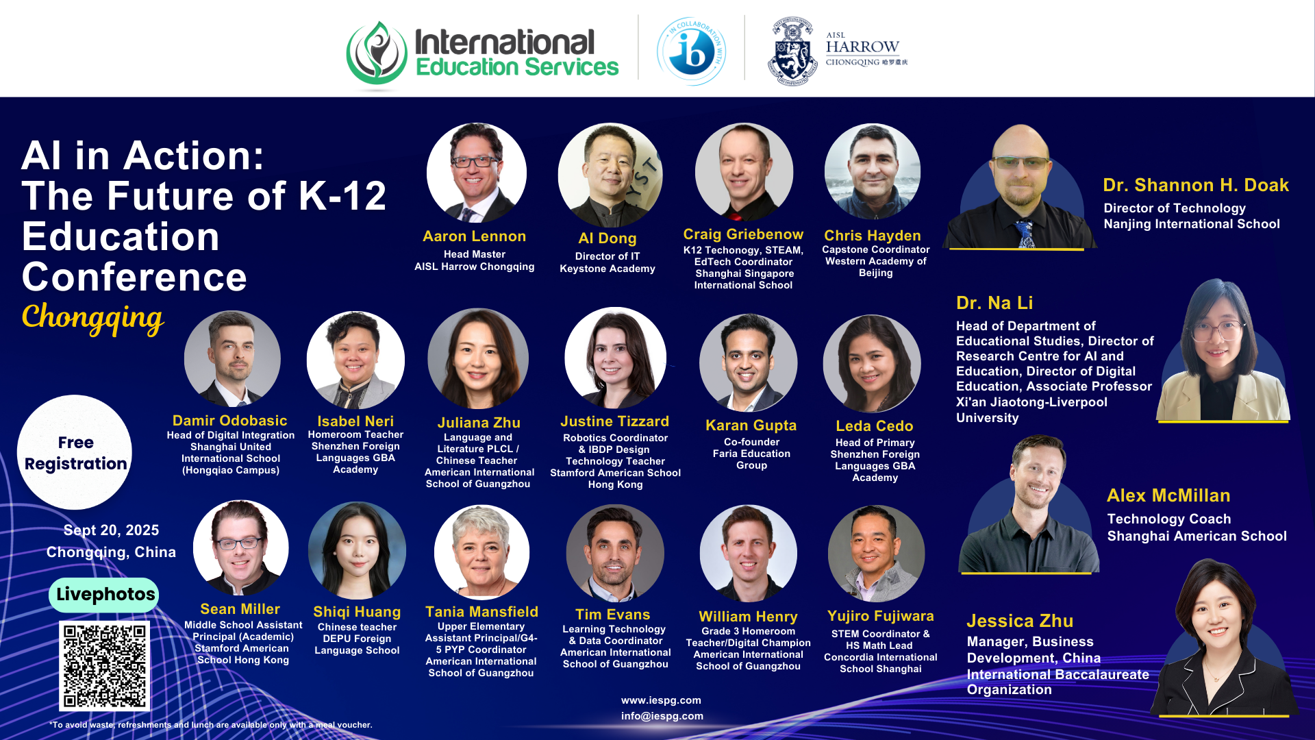 Building on the success of the AI in Action: The Future of K-12 Education Conference in Shanghai, IES is proud to present the next iteration of this groundbreaking event in Chongqing. This conference will continue to explore the transformative role of artificial intelligence in K-12 education, offering fresh insights, practical applications, and collaborative discussions tailored to the evolving needs of educators, policymakers, and technology innovators. Join us in Chongqing as we continue the conversation on shaping the future of education through AI.