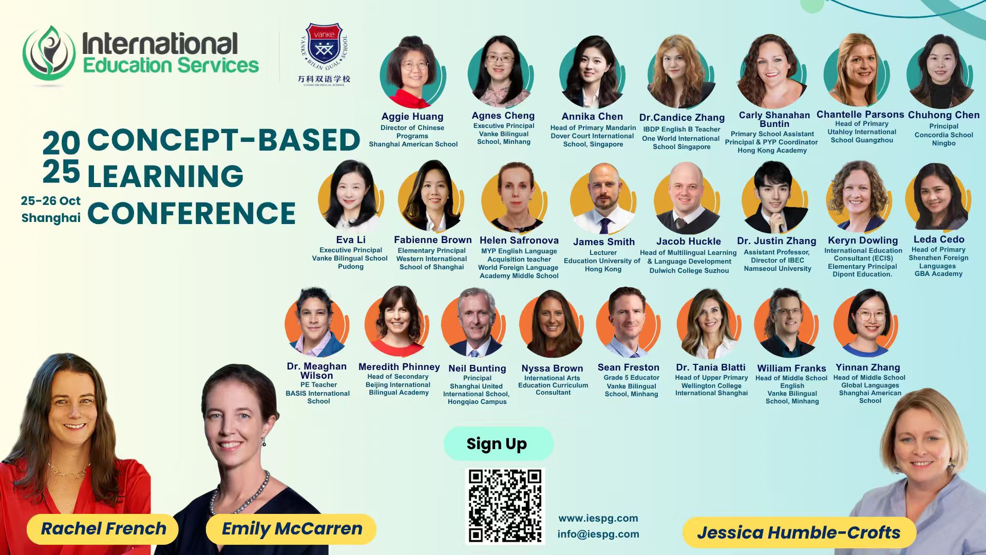 | Concept-Based Inquiry Specialist | Assistant Professor, Director of IBEC of Namseoul University | International education consultant (ECIS) elementary principal, Dipont Education. | Head of Primary, Shenzhen Foreign Languages GBA Academy |